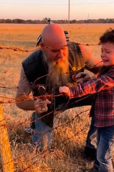 By sunset, Cedar Valley had a new story—one that traveled across porches, diners, and grocery aisles. A story about a biker who heard a child cry and didn’t hesitate for a second. A man who cut through barbed wire with steel tools and raw courage to save a little boy who was simply trying to play.