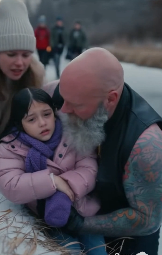 Because on that bitter afternoon, when everyone else froze in fear, one man — a rough, leather-clad biker — dove headfirst into danger to save a life.