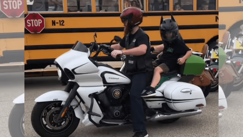 Because sometimes, real heroes don’t roll in with fanfare. They pull up on a Harley, stop the noise, and leave behind the kind of silence that teaches louder than words ever could.