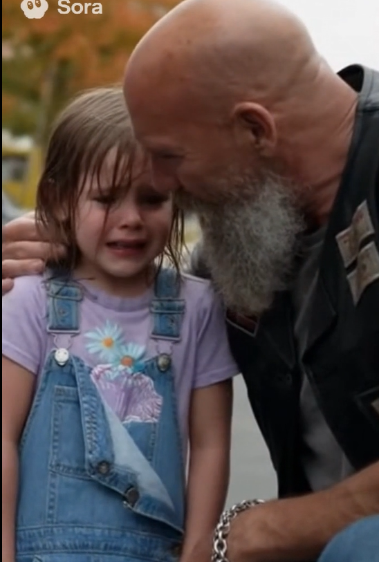 After a long ride, Razor stopped outside the local diner for a cup of coffee. As he stepped off his bike, a small figure caught his eye — a young girl sitting alone on a swing. Her shoulders slumped, her face buried in her arms, and her quiet sniffles barely reached his ears.