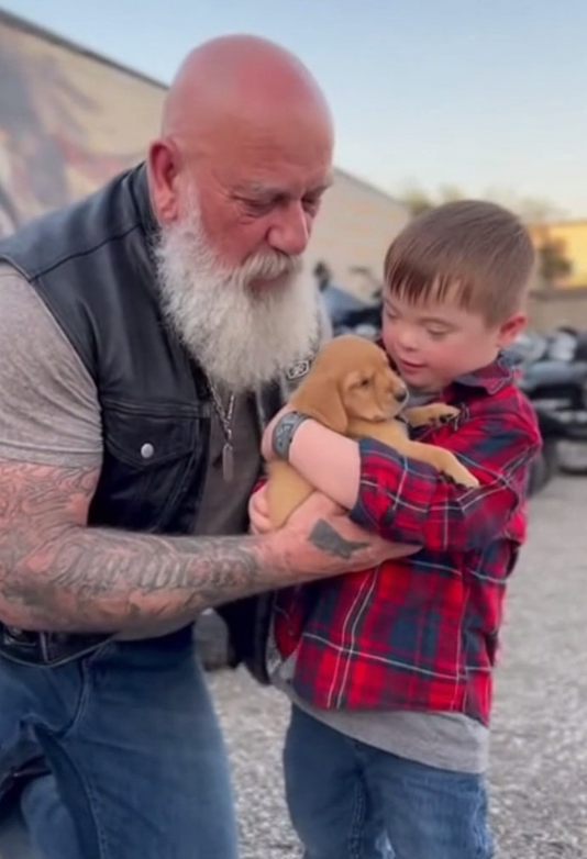 Three days later, the rumble of a Harley echoed once again outside Danny’s house. But this time, Bear wasn’t alone. Riding shotgun in a small sidecar was a golden retriever puppy — tongue out, tail wagging, radiating joy.