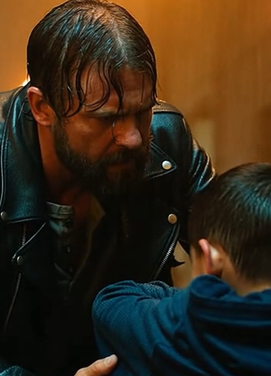 Grady’s gaze softened. He shrugged off his wet leather jacket and draped it over the boy’s shoulders. “Don’t worry, we’ll fix that,” he said with a reassuring smile. “You’re safe now.”