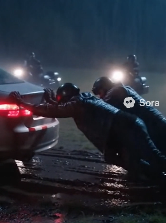 The mud was thick and cold, pulling at his boots like quicksand. But he didn’t stop. He leaned against the back of the car, muscles straining as he pushed with everything he had. The wheels spun, flinging mud across his face and jacket.