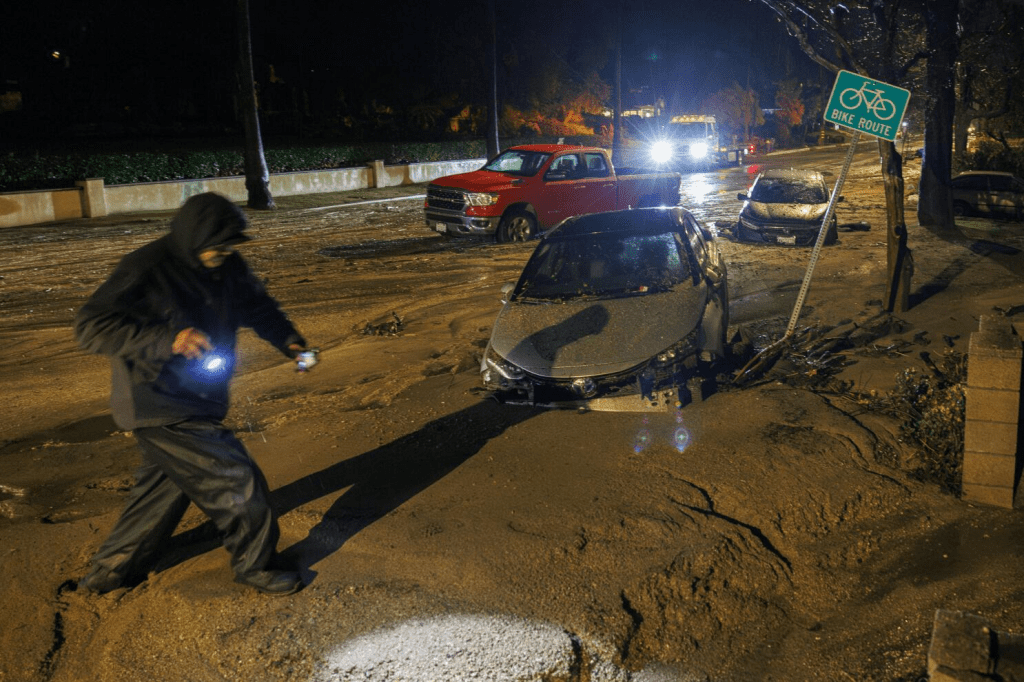 As he got closer, the shape of a car came into view. It was half-buried in mud, tilted to one side, wheels spinning hopelessly. Inside, he could make out silhouettes — a man gripping the steering wheel, a woman clutching a baby in the backseat.