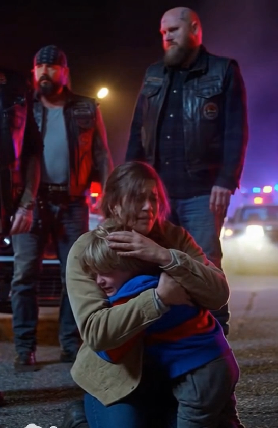 As the group parked at a dusty roadside diner, a woman’s scream shattered the calm. She stumbled into the lot, panic twisting her voice. “They took my boy! Please—someone help!”