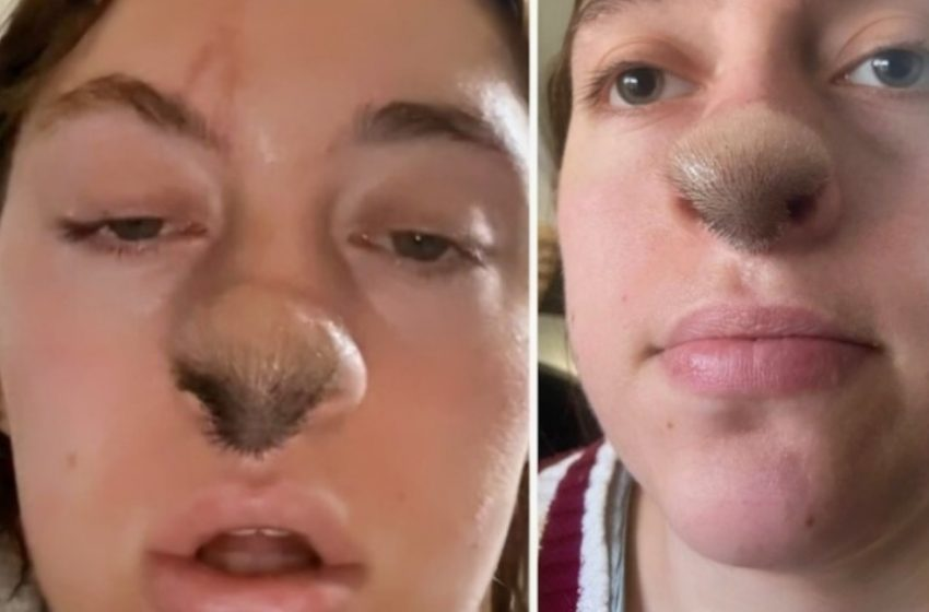 As if the trauma weren’t enough, something unexpected happened during recovery. One of the surgeries involved a skin graft, using tissue from her scalp to repair her nose. It was medically necessary—but no one anticipated the side effect: hair started growing from the grafted area on her face.