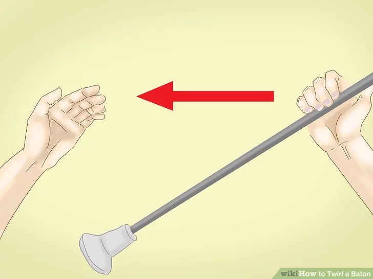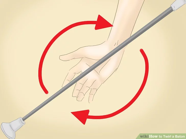 - Step 2: Start with the baton parallel to the ground and rotate it counterclockwise. As the ball points to the left, bring the tip underneath your forearm. Continue the rotation until the ball points directly away from you, then bring the ball over your arm as it points to the right.