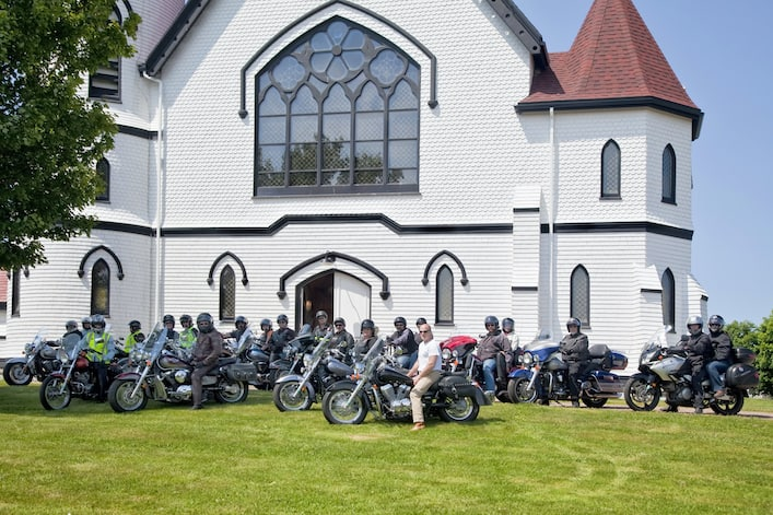 Mike and the Steel Horses MC began a charity ride called Lily’s Run, raising money for families with terminally ill children. Every year, the ride ended at the church with the rainbow window glowing in the sunset.