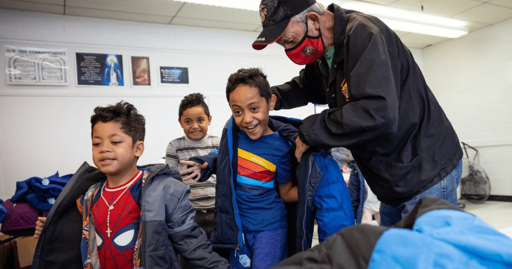 He helped the boy into it, zipping it all the way to his chin. The coat was big, maybe too big, but it wrapped him in warmth. The boy tugged at the sleeves and looked down, amazed.