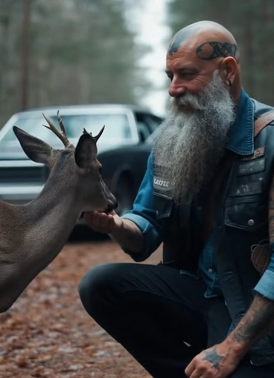 The deer froze, trembling. The biker stayed still, letting the wind do the talking. He knew enough about fear to recognize it — and enough about patience to wait for it to fade. Slowly, he reached into his saddlebag and pulled out an old wrench. It had fixed bikes, fences, and broken things over the years — now, it was about to set something free.